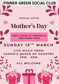 Pinner Green Social Club - Mothers Day - 16/03/2026